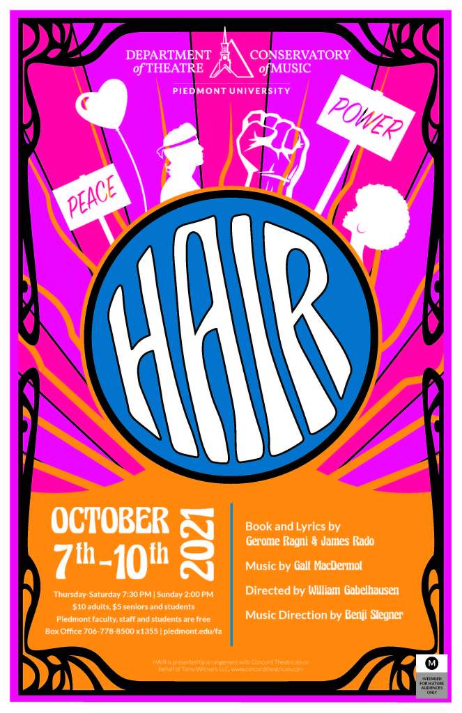 In this section there are examples of some of the work that Jonathan performed for Piedmont University Department of Theatre’s production of the musical Hair in his Junior Year.