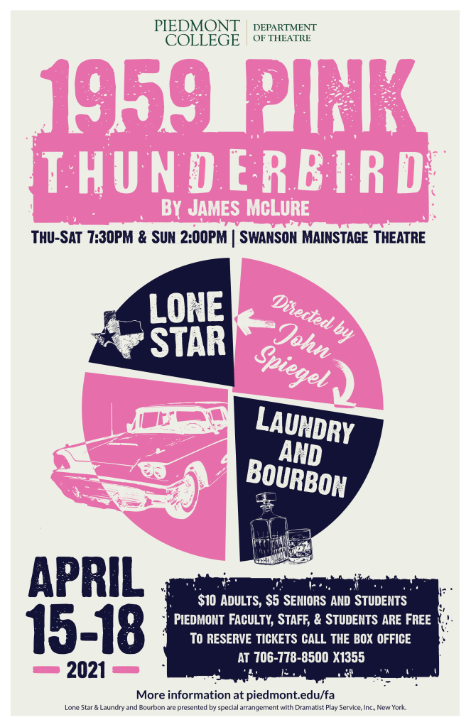 In this section there are examples of some of the work that Jonathan performed for Piedmont University Department of Theatre’s production of the plays Laundry and Bourbon & Lone Star in his Sophomore Year.