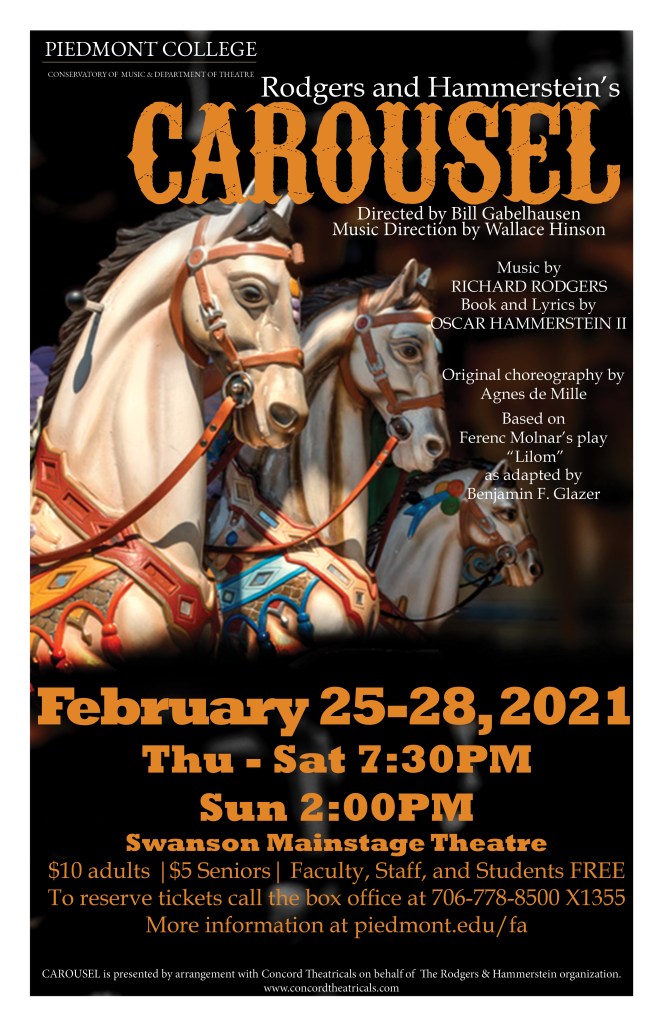 In this section, there will be a poster designed by Jonathan and the drafts leading to the final product. This poster was used for the Piedmont University Department of Theatre’s Production of Carousel in his Sophomore Year.